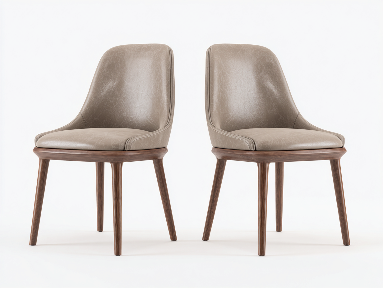This dining chair presents a modern and elegant form with a gently contoured seat and backrest, designed for comfortable everyday dining. The light grey upholstery combined with solid wood legs creates a balanced and versatile look for contemporary interiors.